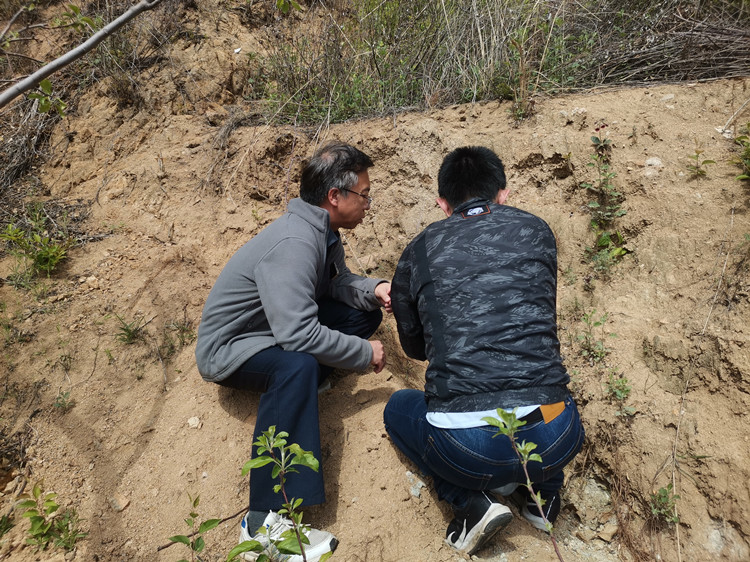 那天跟隨著馮濤來到了萊西萌山金礦勘查項目鉆機(jī)現(xiàn)場,見到剛提取出來的巖心,大家一哄而上,紛紛討論著見礦情況,可是等一旁人都散去了,馮濤仍然蹲在那里,拿著石頭,反復(fù)觀察著、研究著、琢磨著。