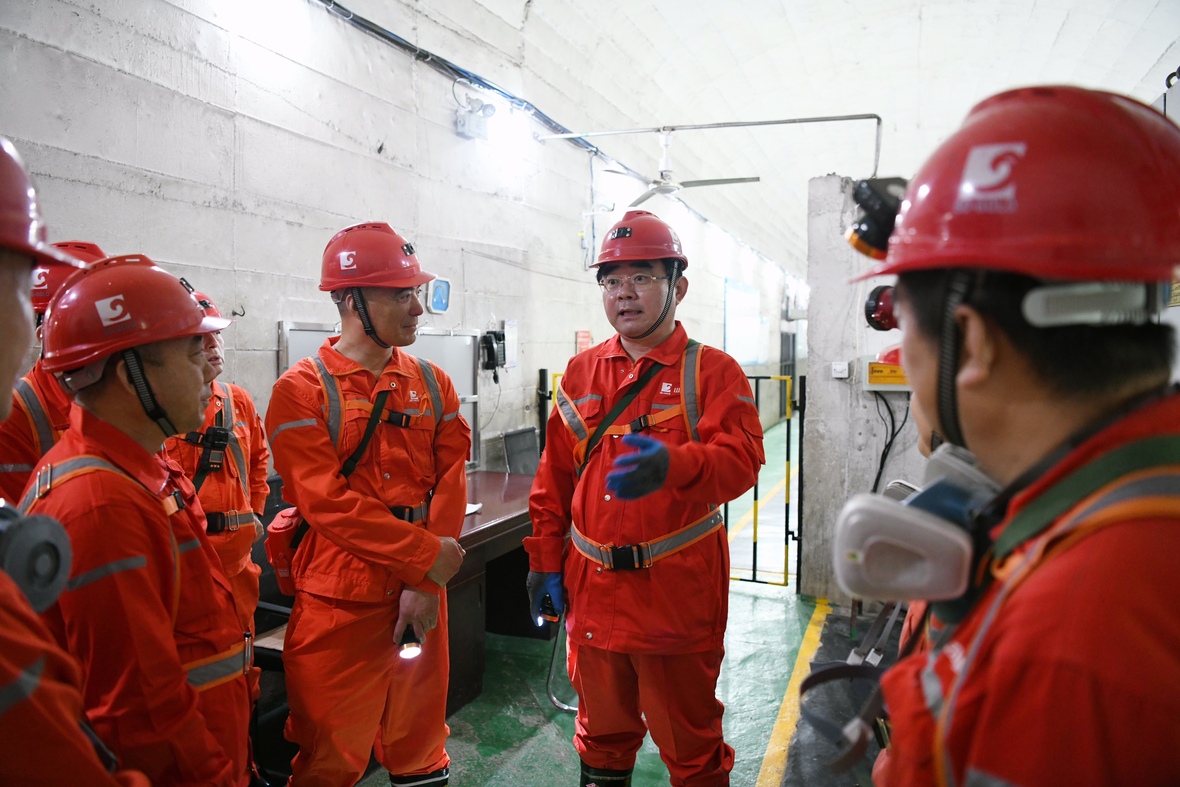 滿慎剛先后到井下-88米采場和-150米水泵房等實(shí)地了解掘進(jìn)作業(yè)、安全生產(chǎn)、標(biāo)準(zhǔn)化巷道建設(shè)、防治水等工作,看望慰問正在作業(yè)的一線工人,向他們詳細(xì)詢問生產(chǎn)生活情況,代表集團(tuán)領(lǐng)導(dǎo)班子向節(jié)日期間堅(jiān)守生產(chǎn)一線的員工致以親切問候和節(jié)日祝福,叮囑他們一定要時(shí)刻牢記安全第一,鼓勵(lì)他們靠勞動(dòng)實(shí)干增加工資收入、創(chuàng)造美好生活。他還到應(yīng)急調(diào)度指揮中心深入了解雨量監(jiān)測系統(tǒng)、水文監(jiān)測預(yù)警系統(tǒng)、人員定位管理系統(tǒng)等運(yùn)行情況,強(qiáng)調(diào)要科學(xué)有效推進(jìn)機(jī)械化、信息化、自動(dòng)化、智能化礦山建設(shè),夯實(shí)本質(zhì)安全基礎(chǔ)。